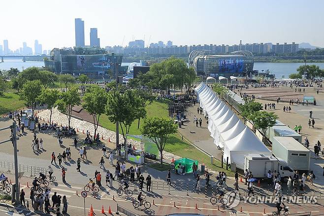 (서울=연합뉴스) 류효림 기자 = 25일 세븐틴 공연이 열리는 서울 반포한강공원이 시민들로 붐비고 있다. 2025.5.25