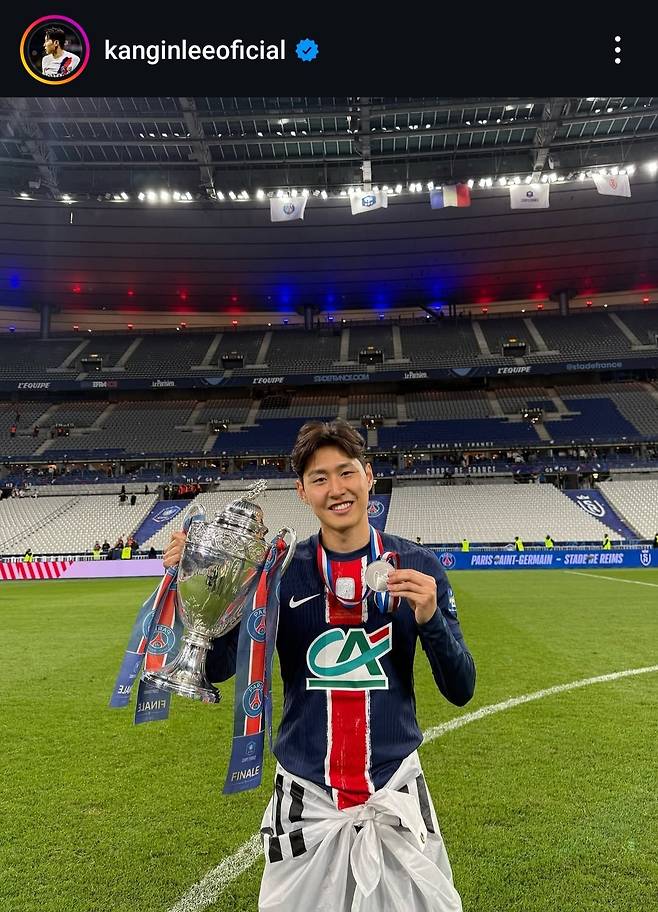 경기 후 PSG는 구단 SNS를 통해 선수단의 우승 세리머니 사진을 공개했다. 리그에 이어 쿠프 드 프랑스까지 우승을 차지한 선수단 모두가 기쁨을 만끽했고, 이강인 역시 활짝 웃는 모습이 포착됐다.