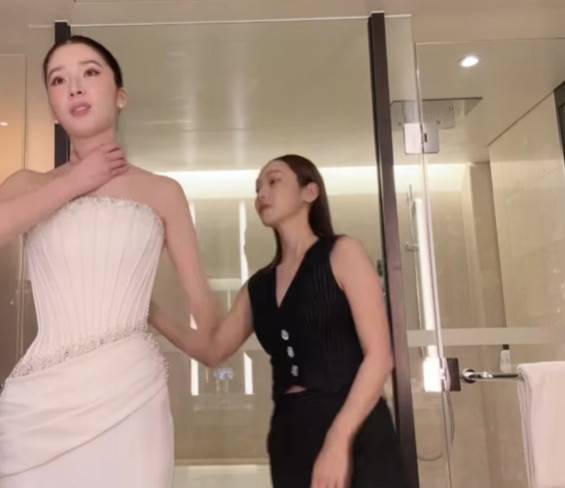 두 사람은 서로 손을 맞잡고 눈을 맞추며 우정을 과시해 훈훈함을 자아냈다. 또한 드레스 피팅을 도와주는 제시카의 모습도 영상으로 공개돼 눈길을 끌었다.