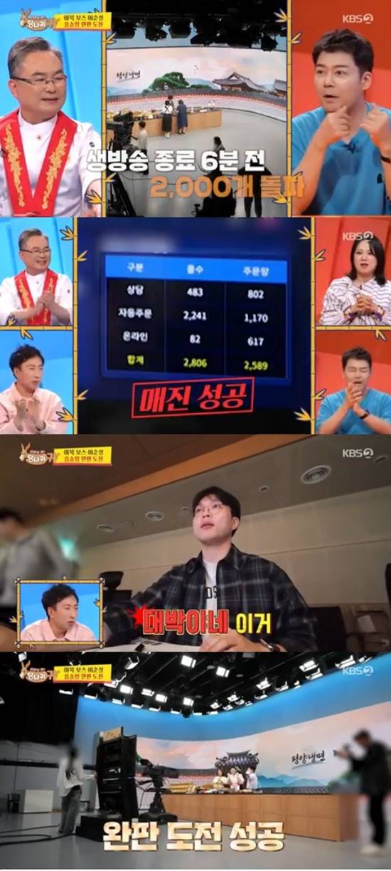 이순실이 홈쇼핑 첫 완판에 성공했다.