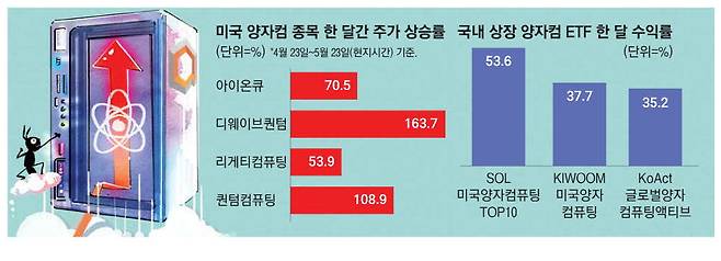 한편 관련 종목에 투자하는 국내 상장지수펀드(ETF) 5종도 기지개를 켰다. 지난 한 달간 'SOL 미국양자컴퓨팅TOP10'은 53.6% 오르며 관련 ETF 중 수익률 1위를 차지했다.