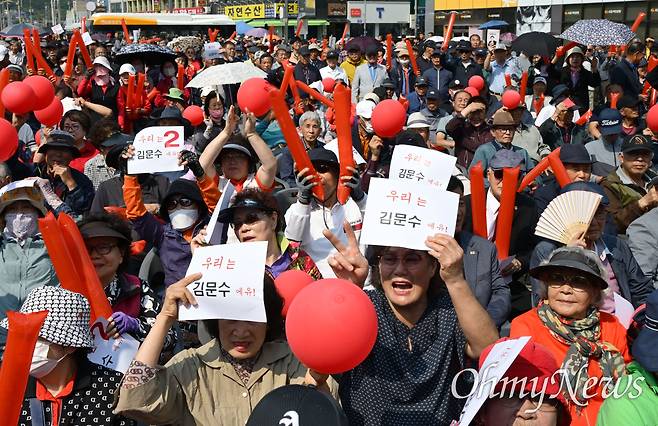[오마이포토] "김문수에유!" 연호하는 홍성군민
