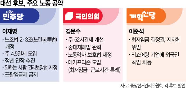 李 "노란봉투법" 金 "주52시간 완화"···성장회복 견인할 생산성 대책은 실종 [노동 공약 심층 분석]