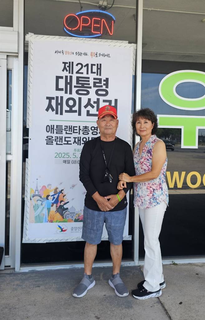 | ▲ 21대 대선 재외국민 투표가 5월 22일부터 전 세계 118개국 223개 재외투표소에서 일제히 시작됐다. 플로리다 동서부 해안에서 4시간을 달려 투표소를 찾은 이상남씨(76) 부부 |