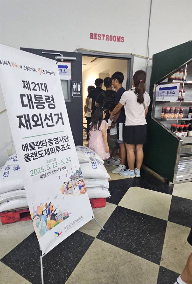 | ▲ 21대 대선 재외국민 투표가 5월 22일부터 전 세계 118개국 223개 재외투표소에서 일제히 시작됐다. 동포 유권자들이이 애틀랜타총영사관 관할 올랜도 재외투표소에서 투표를 위해 줄을 서고 있다. |