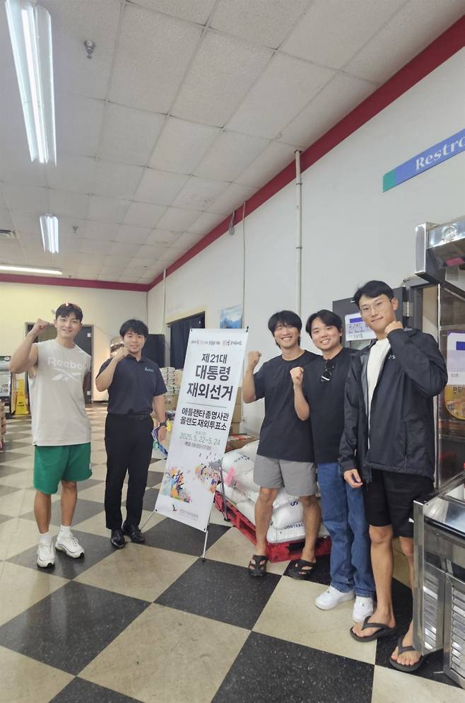 | ▲ 21대 대선 재외국민 투표가 5월 22일부터 전 세계 118개국 223개 재외투표소에서 일제히 시작된 가운데 투표를 마친 유학생들이 함께 인증 사진을 찍고 있다. |