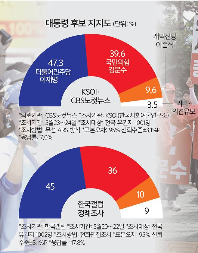 김문수 39.6% 맹추격… 이준석 9.6%