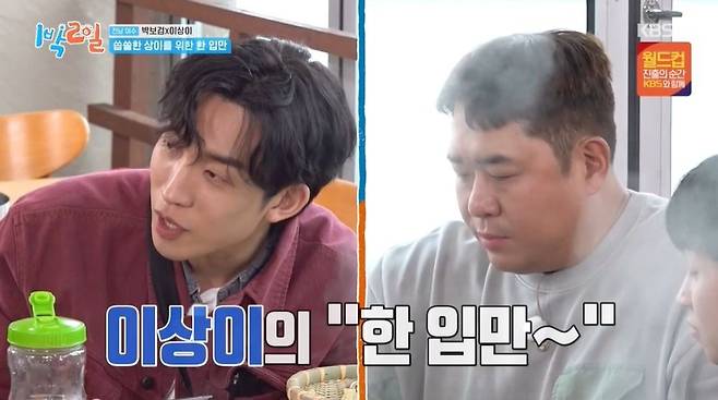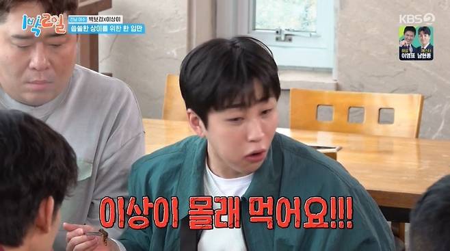 박보검과 이상이는 소문난 대식가. 이상이는 "보검이도 1인분으로 끝난 적이 없고, 3~4인분씩 먹는다"라고 했다. 이상이, 박보검 앞에 앉은 김종민은 계속 뒤를 돌아봤고, 박보검은 그런 김종민에게 괜찮냐고 물었다. 김종민이 "목이 빠질 것 같다"라고 호소하자 문세윤은 "이 형 대단하다. 누가 나와도 안 돌아보던 형인데"라며 김종민이 뒤돌아보느라 자신을 가린다고 투덜거리기도.