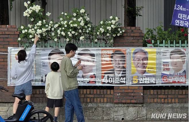 25일 이재명 민주당 대선후보는 오전 민주당사에서 기자간담회를 가진 뒤 오후엔 당진과 아산, 천안 등 충남을 찾아 유세에 나섰다. 김문수 국민의힘 대선후보는 역시 오전 충북 옥천에 자리한 박정희 전 대통령의 영부인 육영수 여사의 생가를 예방했고 이어 보령, 서산, 당진, 아산 등 충남을 찾아 유권자들에게 지지를 호소했다.