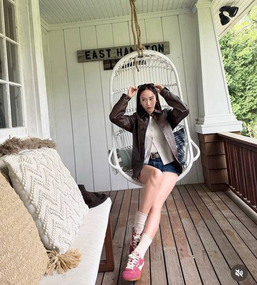 25일 제시카는 자신의 소셜 계정에 여러 장의 사진을 공개했다. 이국적인 분위기의 저택 테라스에, 천장에 매달린 그네 의자에 앉아 있거나 테라스 난간에 앉아서 포즈를 취하는 제시카는 산뜻해 보였다. 그는 숏팬츠를 과하지 않은 분위기로 입고자 발목이 넘는 양말과 함께 핑크색 운동화를 매칭했다.