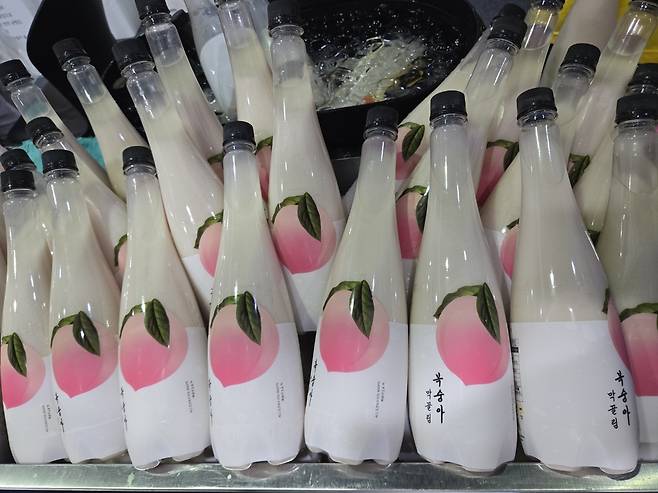막걸리 별산과 유톡자톡 등으로 막걸리 마니아들 사이에서 입소문을 타고 있는 양주도가가 ‘복숭아 막끌림’이라는 신상 막걸리를 가지고 출품했다. ‘복숭아 막끌림’는 복숭아 속살처럼 뽀얀 빛깔과 상큼하고 달달한 풍미가 돋보이는 막걸리다. 뚜껑을 따고 잔에 따르면 생그러운 복숭아 향이 은은하게 퍼진다. 입 안에 머금으면 복숭아의 풍미와 단맛이 꽉 차오르고 쌀의 보드라운 질감이 느껴진다. 김민아 “복숭아의 달콤한 향을 제대로 담아낸 히트상품”이라며 “디자인부터 첫맛 끝맛까지 섬세한 터치가 느껴진다”도 설명했다.