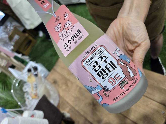 양구막걸리는 양구문화재단과 로컬브랜드디벨로퍼 컨츄리시티즌이 공동 개발한 프리미엄 막걸리 브랜드다. 강원도 양구에서 재배된 향미쌀과 특산물 곰취를 활용해 개발한 지역 기반 주류 브랜드로, 지역의 정체성을 기반으로 하면서도 현대적인 감각을 접목한 것이 특징이다. 이번 막스포에는 ‘백주대낮’과 ‘곰주망태’를 가지고 출품했다. 특히 ‘곰주망태’는 양구 곰취를 주원료로 한 9도 프리미엄 막걸리로, 쓴맛을 줄이고 진한 향미를 살렸다. 명욱 교수는 “귀여운 캐릭터와 곰취의 향긋한 맛을 가진 막걸리”라며 “곰이 먹는 나물이라는 뜻의 곰취, 그래서 ‘곰주망태’란 이름을 가진 무인공감미료술”이라고 말했다.