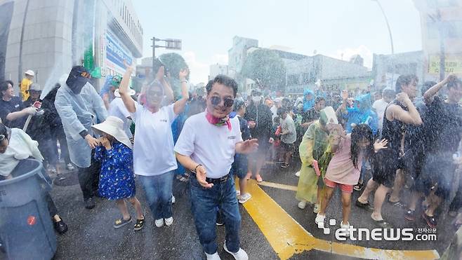 이날 오후 1시부터 펼쳐진 개막난장 '아!水라장'은 시민, 예술가, 마임이스트가 물을 매개로 하나 되어 도심을 거대한 무대이자 놀이터로 탈바꿈시켰다.
