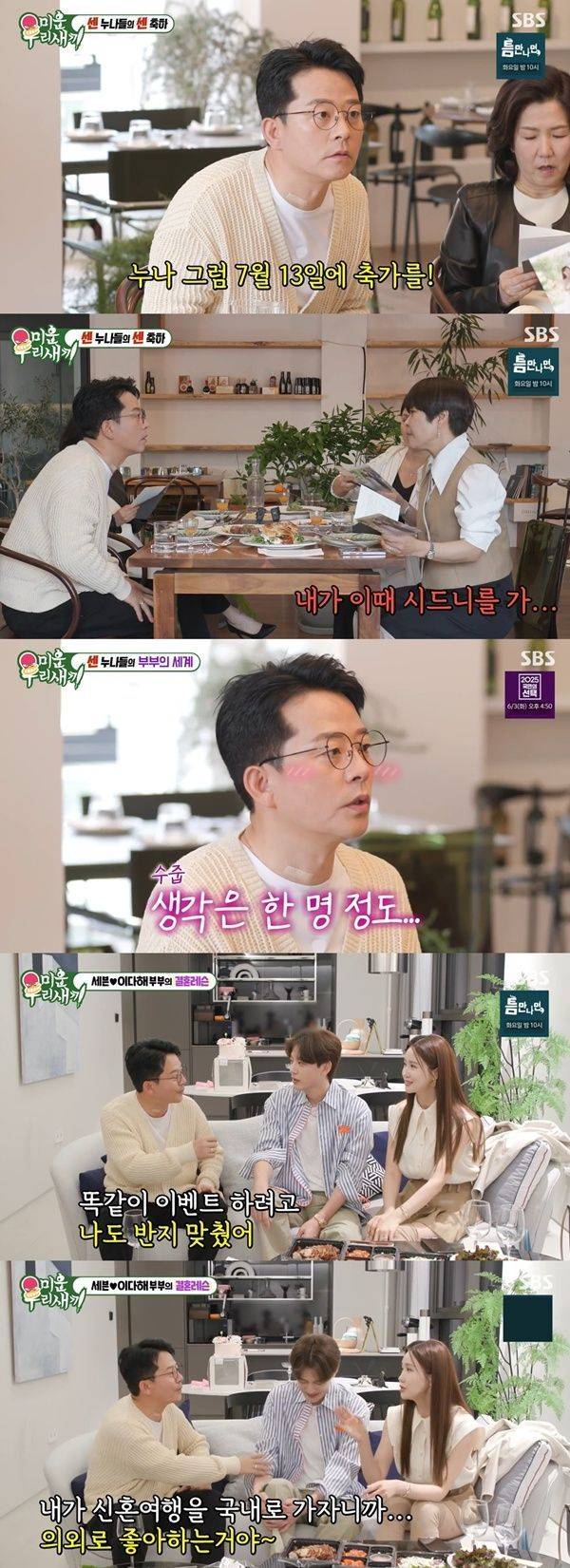 이에 당황한 김준호는 "누나와 가수 거미 누님 두분인데"라고 얘기했다. 조혜련은 "네가 사실 좀 간을 보지 않았냐. 김준호, 김지민은 세상 두쪽이 나도 한다였다. 그런데 김준호 네가 약간 밀당을 했다"면서도 "어떡하냐. 결혼식 날짜를 미룰 수는 없지 않냐"고 해 웃음을 안겼다.