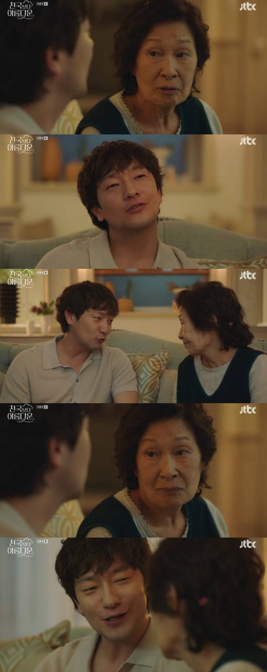 25일 방송된 JTBC 토일드라마 '천국보다 아름다운' 12회(최종회)에서는 고낙준(손석구 분)이 이해숙(김혜자)에게 환생을 하자고 제안한 모습이 그려졌다.