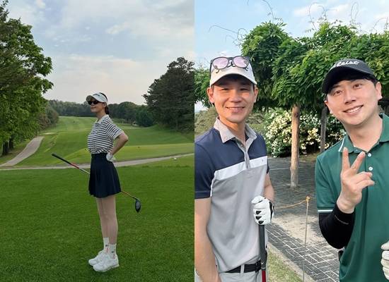 24일 한지혜는 "남동생과 신랑과 골프"라는 글과 함께 여러 장의 사진을 공유했다.