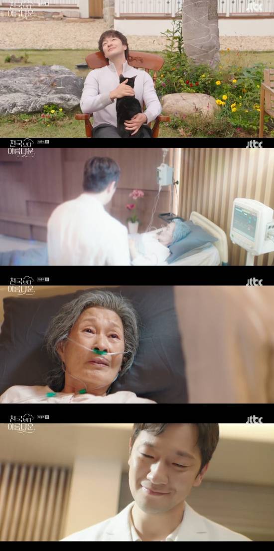 25일 방송된 JTBC 토일드라마 '천국보다 아름다운' 12회(최종회)에서는 고낙준(손석구 분)이 이해숙(김혜자)을 위해 이별을 택한 모습이 그려졌다.