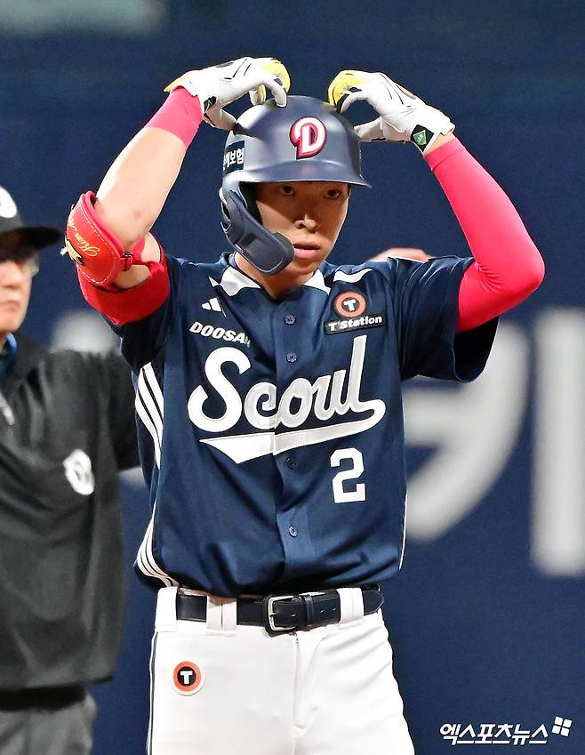김민석은 이날 주 포지션인 외야가 아닌 2루수로 깜짝 선발 출전했다. 김민석은 학창 시절 유격수를 중심으로 내야수로 뛰다가 프로로 입단해 곧바로 외야수로 전향했다. 입단 초반 주로 중견수 뛰었던 김민석은 두산 이적 뒤 좌익수 수비를 주로 소화했다.