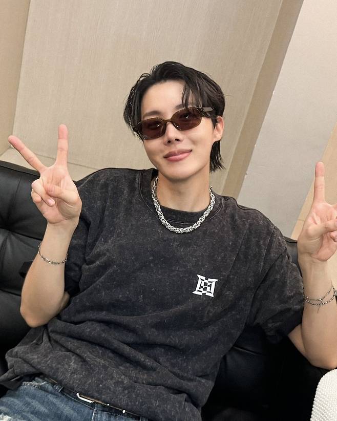 제이홉이 월드투어 중 마닐라에서 착용한 선글라스는 ‘코에(COE)’의 BITTER. 스퀘어 디자인의 뿔테 선글라스로 보기보다 가볍고, 올리브 컬러 프레임에 톤 다운된 색감의 렌즈는 블랙 또는 브라운을 탈피해 독특한 무드를 연출할 수 있다.