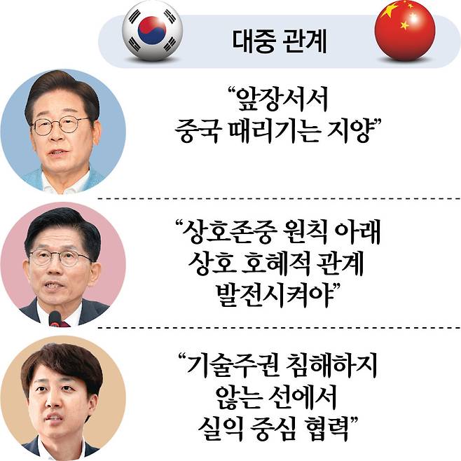 이 후보 측은 미국의 대중 견제 동참 문제에 대해서도 “미국의 요구 수준을 보면서 참여하긴 해야 할 것”이라면서도 “우리가 먼저 앞장서서 중국을 때리는 것을 지양하겠다”고 전했다.