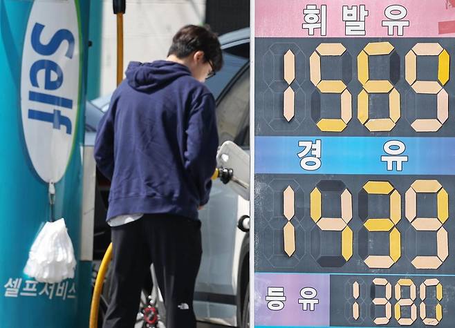 25일 서울 시내의 한 주유소에 기름값이 표시돼 있다. 한국석유공사 유가정보 사이트 오피넷에 5월 셋째 주 전국 주유소의 휘발유 평균 판매 가격은 L당 1635.8원으로 집계됐다. 전주보다 1.6원 내리며 2주 연속 하락세를 이어갔다. 경유 판매 가격도 L당 1501.1원으로, 일주일 전보다 2.3원 떨어지며 2주째 내렸다.