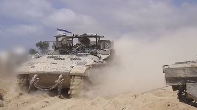 ▲ 24일(현지시간) 가자지구 북부에서 작전 중인 이스라엘군 전차부대