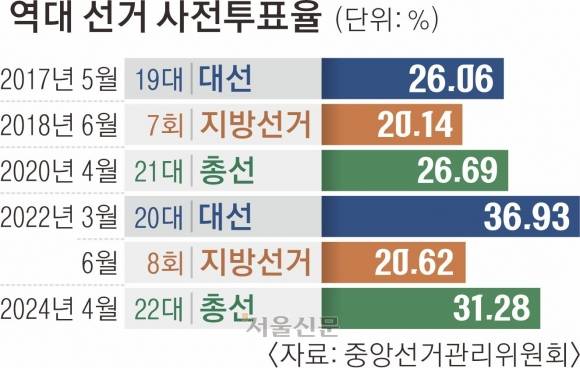 실제로 사전투표율이 계속 높아지는 만큼 후보들은 예선 격인 사전투표에서부터 ‘표 모으기’에 사활을 걸 수밖에 없다. 2017년 19대 대선 당시 사전투표율은 26.06%를 기록했고, 2022년 20대 대선 때는 36.93%를 기록했다.