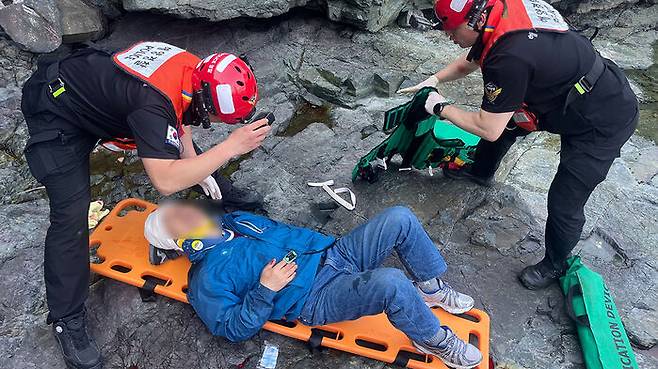 어제(25일) 오후 2시 30분쯤 부산 사하구 다대동 화손대 바위에서 70대인 A 씨가 약 5m 아래로 추락해 머리와 허리 등을 다쳤습니다.