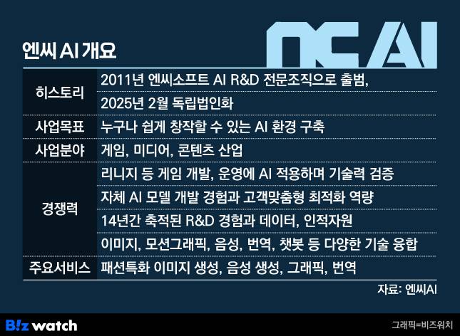 '리니지'와 같은 다중접속역할수행게임(MMORPG)으로 유명한 기업이 AI라는 새로운 시장에 뛰어들어 '세계 1위'를 목표로 삼은 건 우수한 인력과 장기간 축적한 기술에 대한 자신감 때문이다. 엔씨는 2011년 국내 게임사 최초로 사내 AI 연구·개발(R&D) 조직을 출범하며 시장을 놀라게 했다. 바둑보다 경우의 수가 많다는 MMORPG에서 최정상급 프로게이머를 이길 수준의 AI 개발에 성공했고, 거대언어모델(LLM)도 선보였다. 이렇게 14년간 누적된 기술력과 노하우, 인적자원을 바탕으로 게임을 넘어 미디어, 콘텐츠 사업으로 비즈니스 모델을 확장한다는 구상이다.