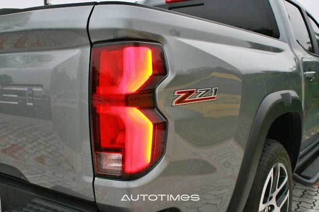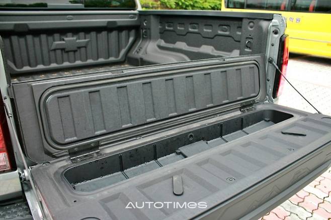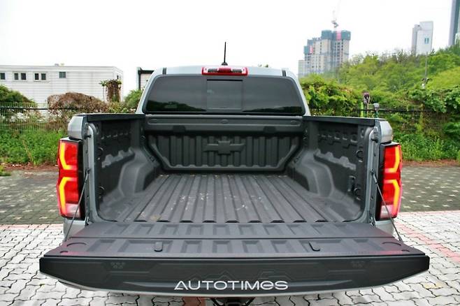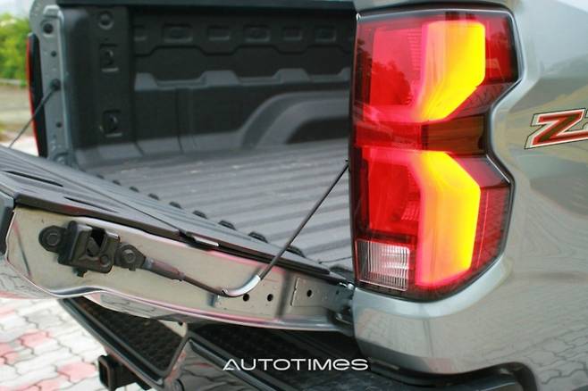 후면부에는 쉐보레 레터링이 큼직하게 음각 처리돼 시인성이 높다. 브레이크등과 후미등은 전구 타입이며 범퍼는 적재함 접근을 위한 발판이 마련돼 있다. 트레일러 히치 리시버와 커넥터는 번호판 아래와 옆에 위치해 있으며 테일게이트에는 여분의 수납공간을 포함해 자주 쓰는 도구 등을 보관하기 좋다.