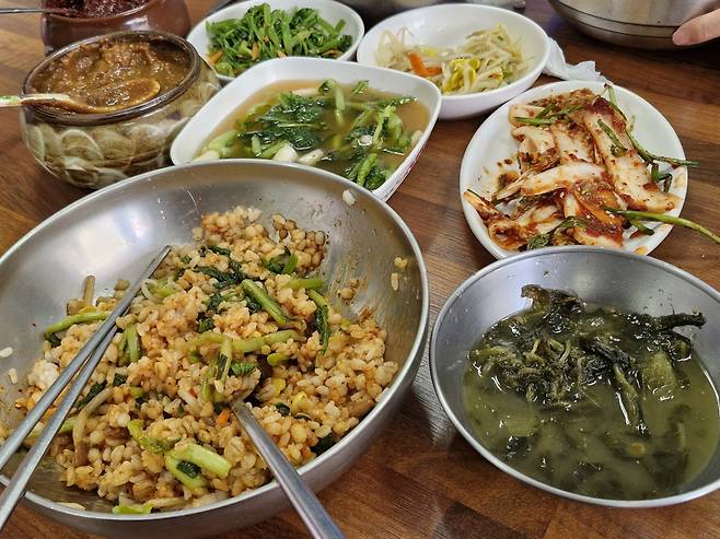 | ▲ 열무보리비빔밥 온천을 끝내고 시장에서 먹는 열무보리비빔밥은 꿀맛이었다. |