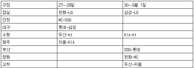 (서울=연합뉴스) 김경윤 기자 = 프로야구 1, 2위 LG 트윈스와 한화 이글스가 5월 마지막 주중 3연전에서 정면충돌한다.