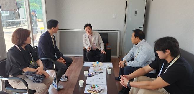 김택수 선수촌장은 이날 오후 3시께 수영 국가대표 출신 이창하 꿈나무육성부장 등을 대동하고 테니스장을 찾았으며, 정인선 회장 등 소프트테니스협회 임원들과 종목 활성화 등에 대해 의견을 나누고 상호 협력를 약속했다.