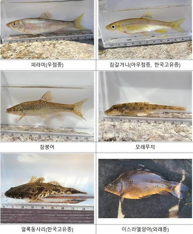 국립중앙과학관(관장 권석민)은 26일 이같이 알리면서 "지난 4월 29∼30일까지 진행된 1차 공동학술 조사를 통해 총 4목 7과 20종, 1품종(이스라엘잉어) 1238개체를 확인했다"고 밝혔다.