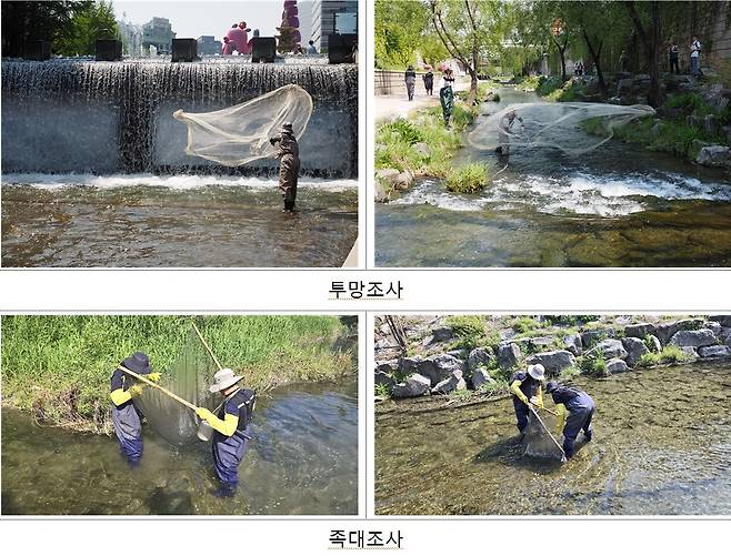 | ▲ 청계천 담수어류 1차 학술조사 모습 |