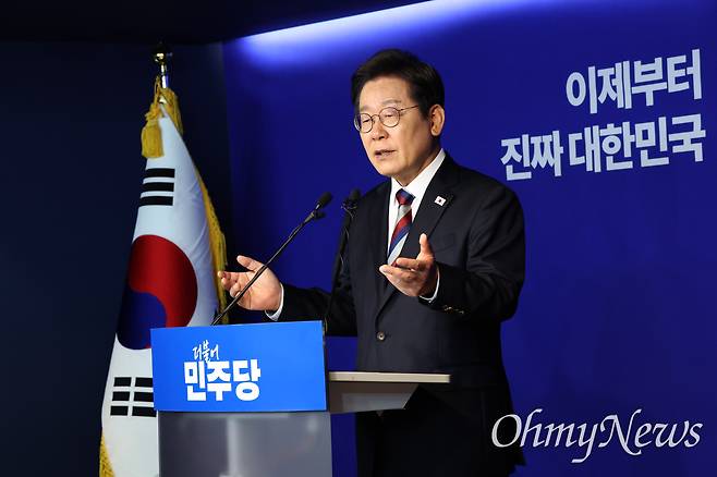 | ▲ 이재명 더불어민주당 대선 후보가 25일 서울 여의도 중앙당사에서 기자간담회를 하고 있다. |