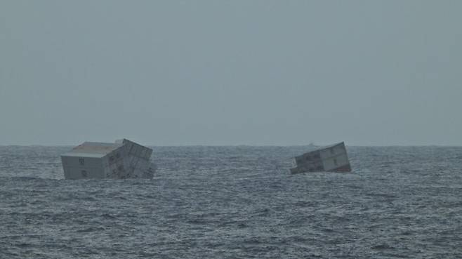▲ 침몰 이후 바다에 떠 있는 컨테이너