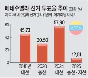 이후 유권자들 사이에서 선거에 대한 불신이 커지게 됐다는 해석이 나오고 있다. 베네수엘라는 마두로 대통령 전임인 우고 차베스 대통령 집권 당시 2004년 대법관 수를 20명에서 32명으로 늘리면서 이 자리에 모두 친정부 인사를 앉혔다. 차베스 전 대통령의 후계자인 마두로 대통령도 2013년 취임 이후 친정부 인사를 대법관으로 앉히고 이들의 임기만 선택적으로 늘리는 방식으로 사법부를 정권의 시녀로 만들었다. 그는 친정부 법관들의 기울어진 판결에 힘입어 12년 넘게 권력을 유지하고 있다. 사법 권력을 등에 업고 정치 탄압 강도도 높이고 있다. 이번 선거 이틀 전 야당 정치인 후안 파블로 과니파는 “폭탄 테러 등 사회 혼란을 일으키려 했다”는 이유로 체포됐다. 이처럼 마두로 정권이 사법부를 권력의 시녀로 만들면서 선거 제도 자체가 의미를 상실했다는 지적이 나온다.