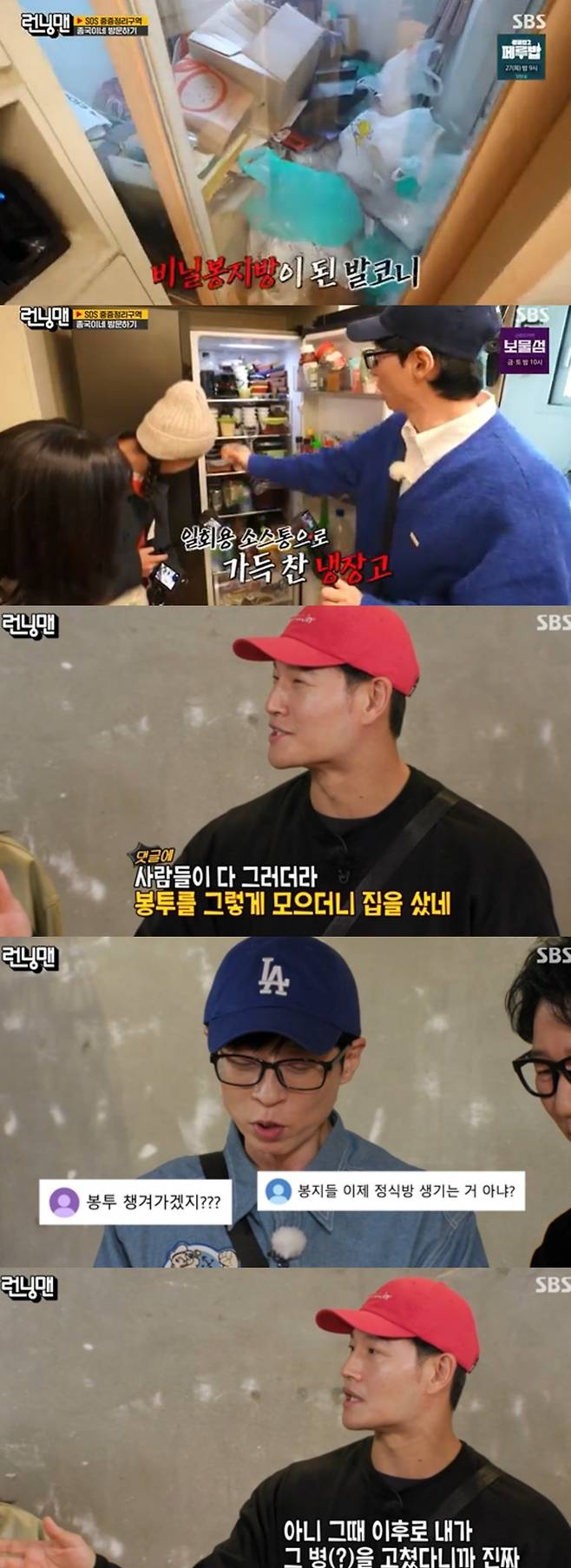 유재석은 이에 "봉투 챙겨가겠지?", "봉지들 이제 정식 방 생기는 거 아니야?" 등 반응을 언급했다.