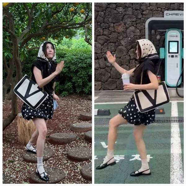 또 다른 사진에서는 전기차 충전소 앞에서 로봇처럼 삣뻣하게 춤을 추고 있는가 하면, 차 안에서는 포장을 뜯은 바게트를 한입에 물어뜯으며 온몸으로 배고픔을 표현하고 있어 폭소를 자아냈다.