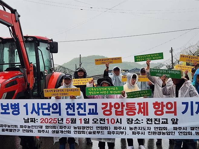 보도자료에 따르면, 이보다 앞서 '파주시 민, 관, 군 정례협의회'가 지난 2025년 5월 15일 열렸는데, 이 자리에서 파주농민회는 '최소한 중량과 속도를 제한하고 교차통행을 허용하라'고 요구했다고 한다. 그 후 국방부 건설사업단과 협의한 결과, 1사단이 이 같은 내용을 22일 오후 공문으로 보낸 것이다.
