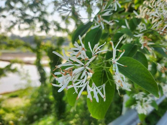 | ▲ 쌀밥사발 이팝나무꽃 배고픈 보리고개 쌀밥사발로 보이는 이팝나무꽃이 민북농민들이 일터로 드나드는 통일대교 가는 길에 만발했다. |
