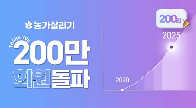 (주)청년농부들(대표 함재호)은 산지직송 농축수산물 직거래 플랫폼 ‘농가살리기’의 회원 수가 최근 200만 명을 돌파했다고 밝혔다.