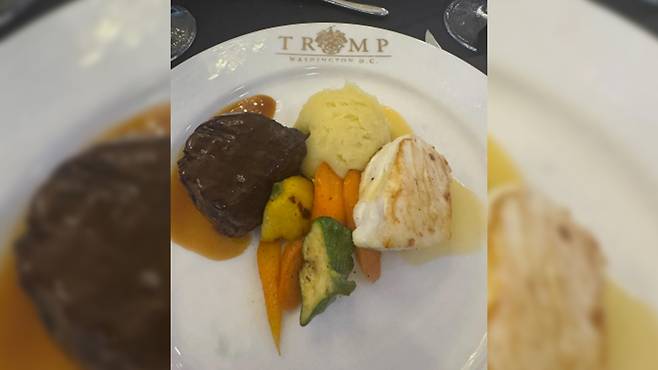 미국 CNN 방송에 따르면 이날 메뉴는 '트럼프 유기농 농장 그린 샐러드'에 이어 메인 메뉴로 안심 스테이크 혹은 생선이 으깬 감자와 채소와 함께 나왔으며 디저트는 따뜻한 초콜릿 라바 케이크였습니다.