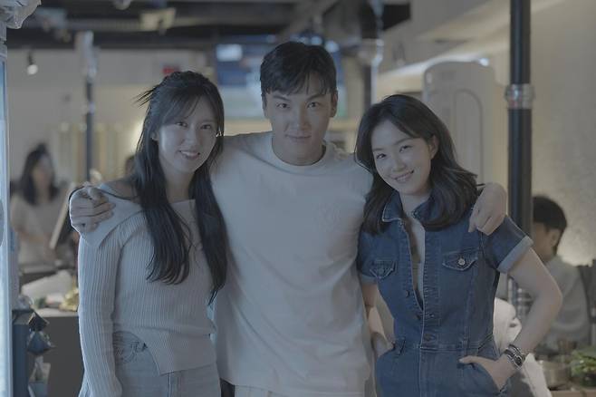 사진 속에는 손은유, 강지영의 어깨에 손을 올린 세븐하이의 모습이 담겨 있다. 세 사람 모두 편안한 차림으로 카메라를 바라보며 미소짓고 있다.