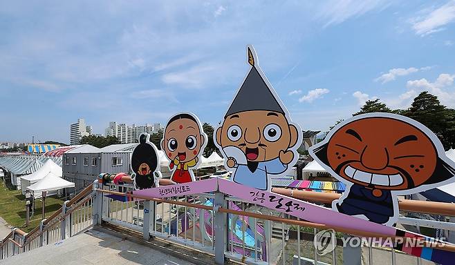(강릉=연합뉴스) 유형재 기자 = 유네스코 인류무형문화유산이자 국가무형유산인 천년 축제 '2025 강릉단오제'가 열리는 강릉시 남대천 행사장 일원이 개막 하루를 앞둔 26일 축제 분위기가 고조되고 있다.