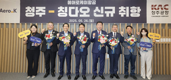 청주공항 거점항공사 에어로케이는 오늘 청주공항에서 취항식을 열고, 주7회 중국 칭다오 정기 노선 운항을 시작했습니다.