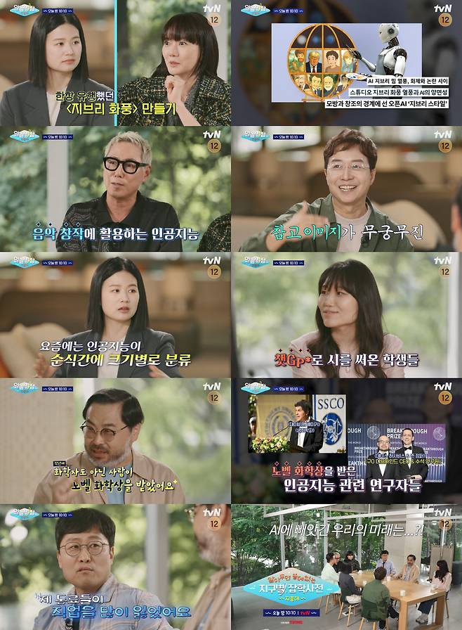 특히, 최근 '지브리풍 이미지'가 유행하며 너도나도 자신의 얼굴을 만화 그림체로 바꾸는 현상이 이어지는 등, 지금 가장 뜨거운 화두는 단연 AI다. 인공지능이 우리의 일상 곳곳을 바꾸고 있다는 사실은 잡학박사들의 실제 경험담에서도 확인된다. 선공개 영상에서 윤종신은 "예전에 작곡할 땐 기타부터 치고 봤지만, 요즘은 AI에 다음을 어떻게 할지 물어본다"라며 보조 도구로 완벽한 AI 기능을 짚었다. 건축가 유현준은 "요즘 젊은 직원들은 스케치를 먼저 하는 게 아니라 소셜미디어를 이용한 검색을 먼저한다"며 인공지능이 비슷한 이미지들을 자동으로 정리해주는 덕에 설계의 방식 자체가 바뀌고 있다고 전했다.
