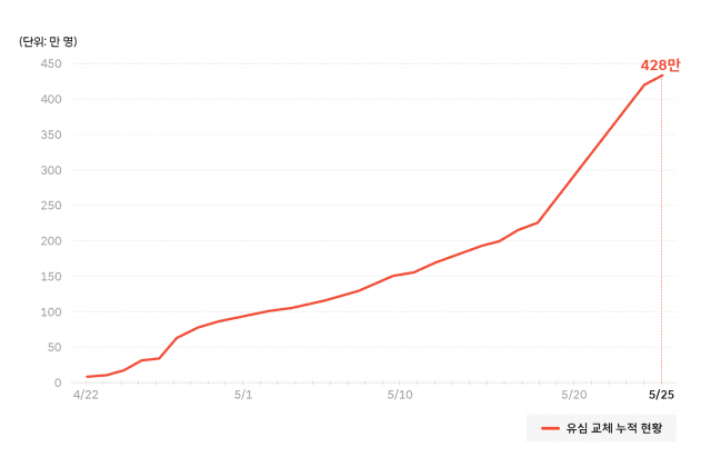 이로써 유심 교체 잔여 예약자 수는 473만 명으로 소폭 감소했습니다.