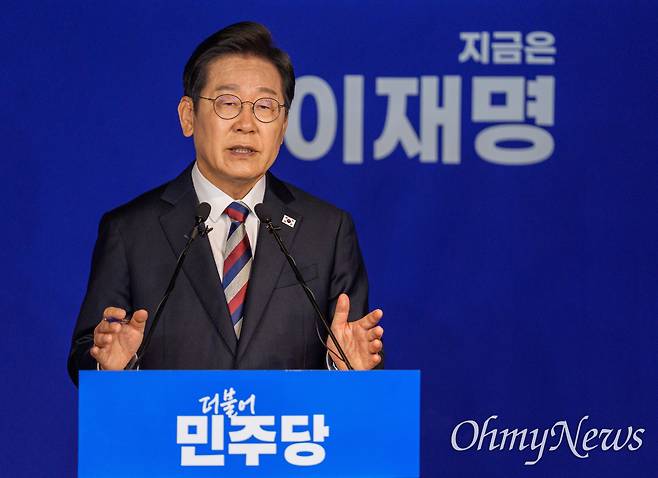 | ▲ 이재명 더불어민주당 후보가 25일 오전 서울 여의도 당사에서 기자회견을 하고 있다. |